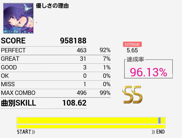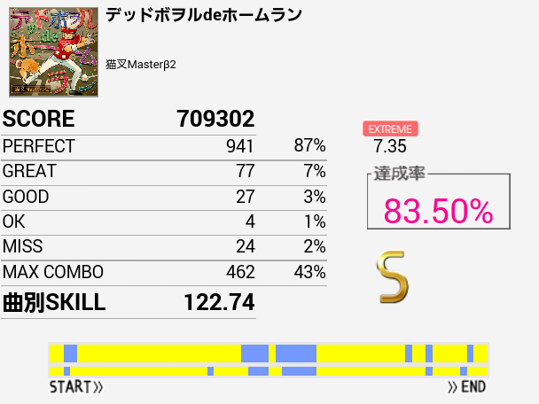 ska ska No.1のSS取得難易度が何気に高い。すぐパフェ率83%とかになってしまう。