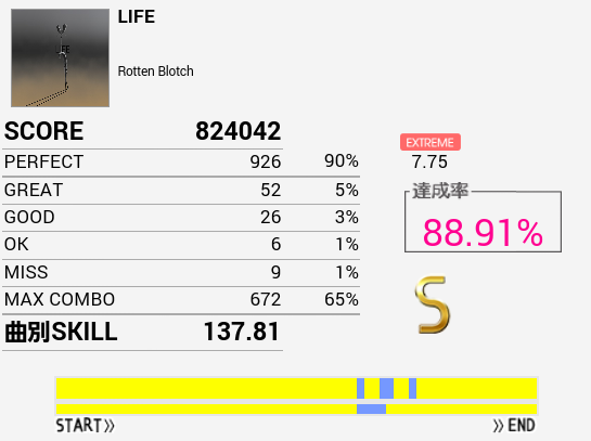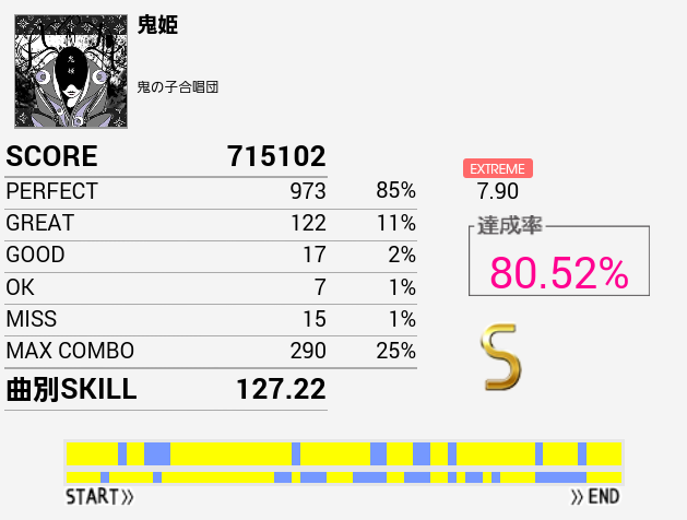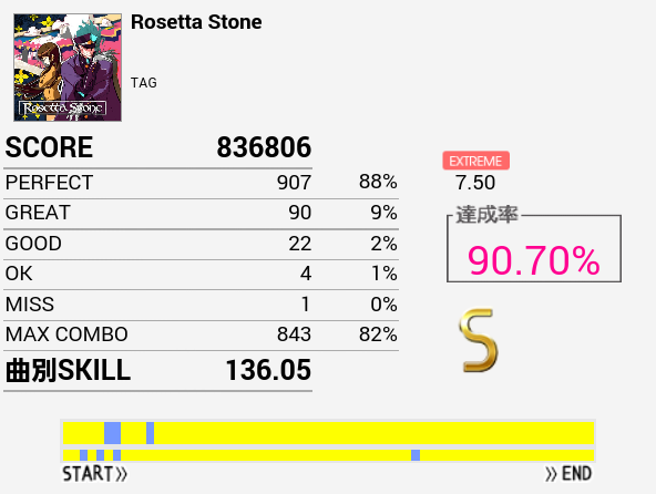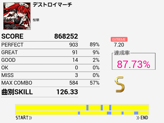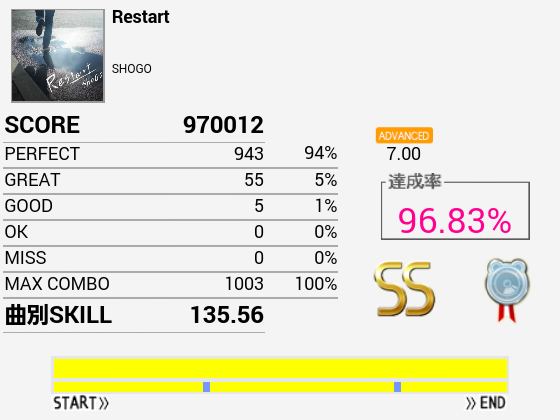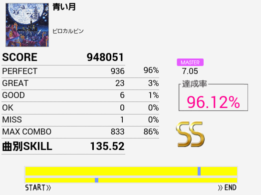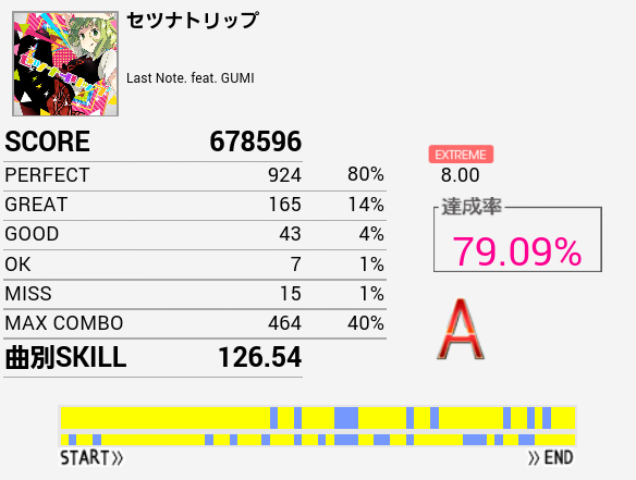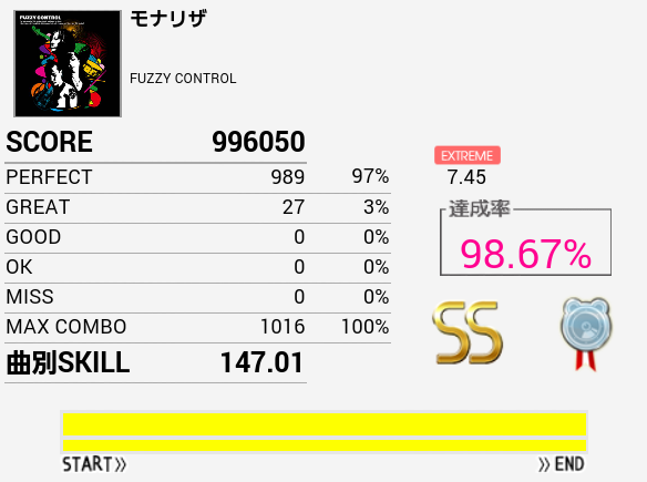 やーっとSS取れた!自分にしてはパフェ率高いしGOODがないのはかなり意外。