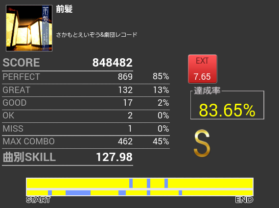 前奏の三連バス+SNとAメロのSN三連打×2がぜんぜんできなくて、達成率が伸び悩んでいる。
