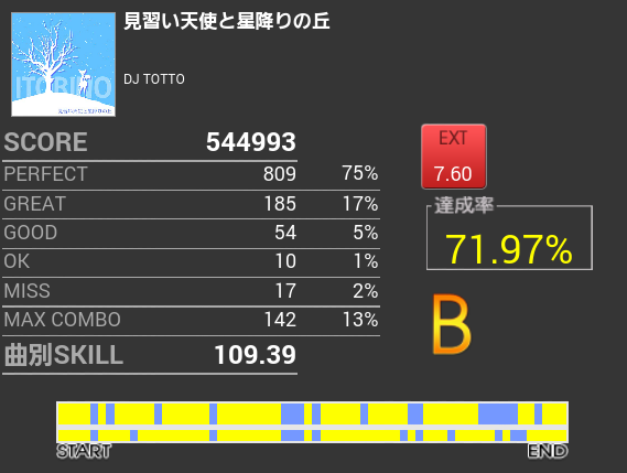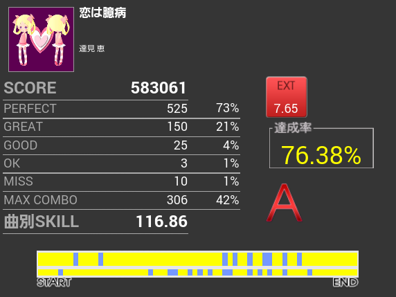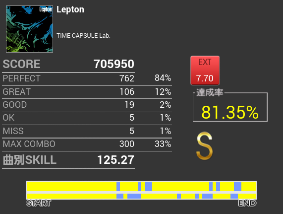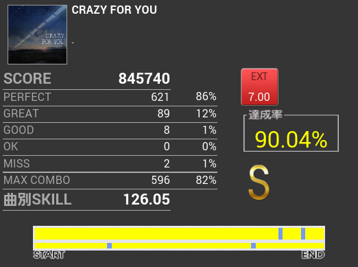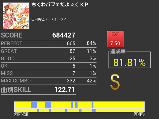 曲も譜面も好きで結構プレイしているのだけれど、一向に伸びる気配がない。