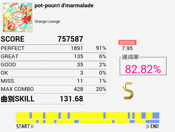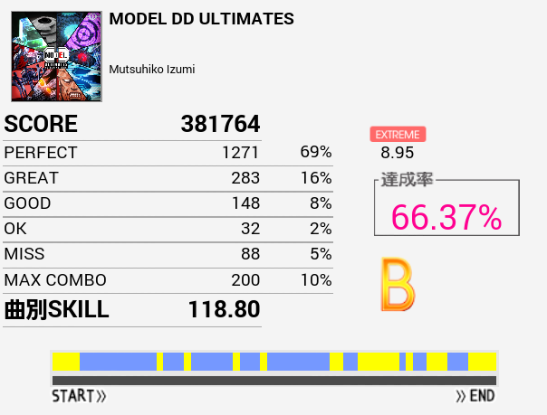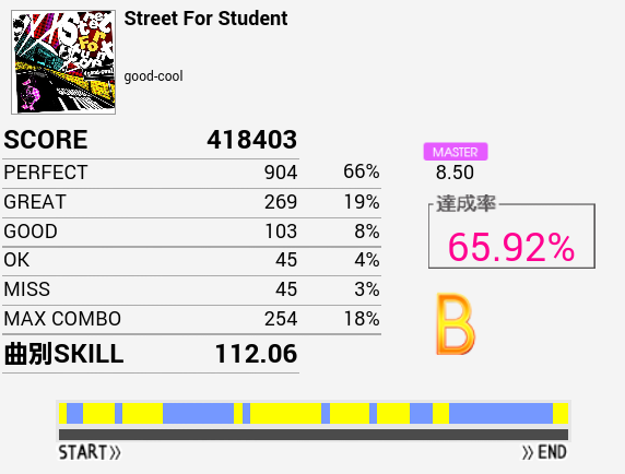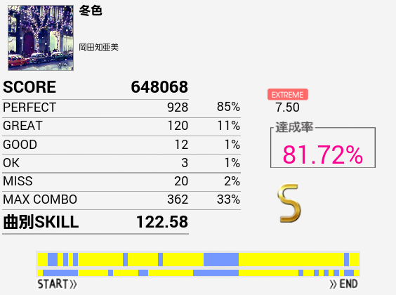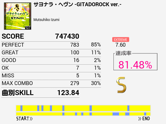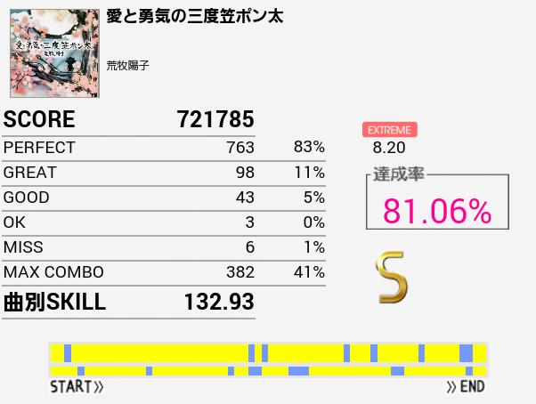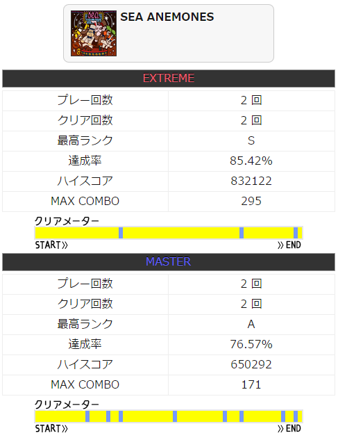 ツーバスといえばこの曲ができないなと思い久々にプレイしたらSは出た(前回B判定)。
