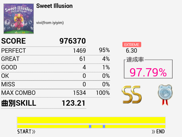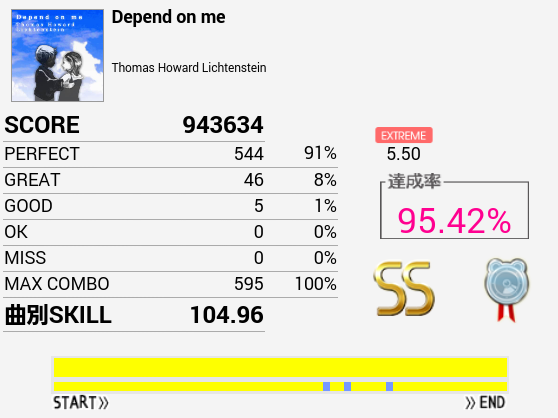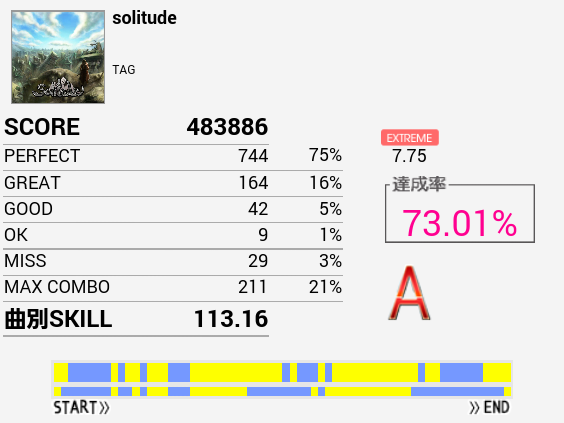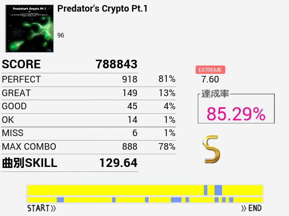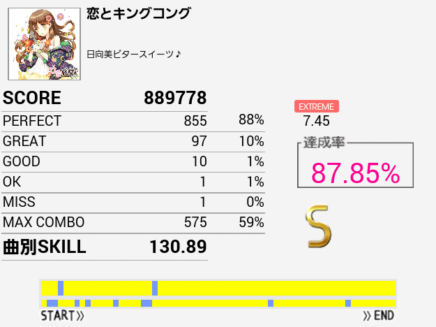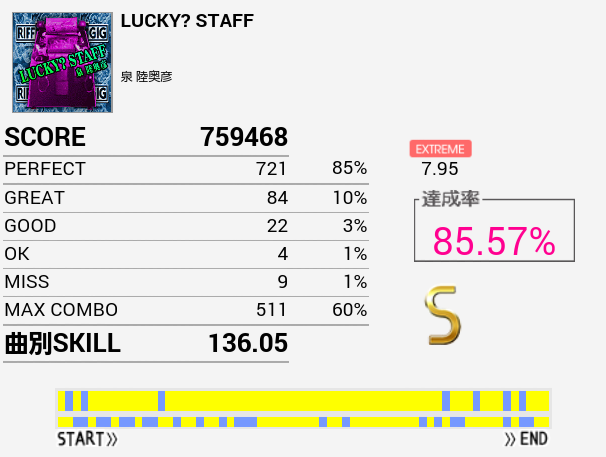 本日1クレ目の1曲目でようやくフルコン。一年以上かかった。