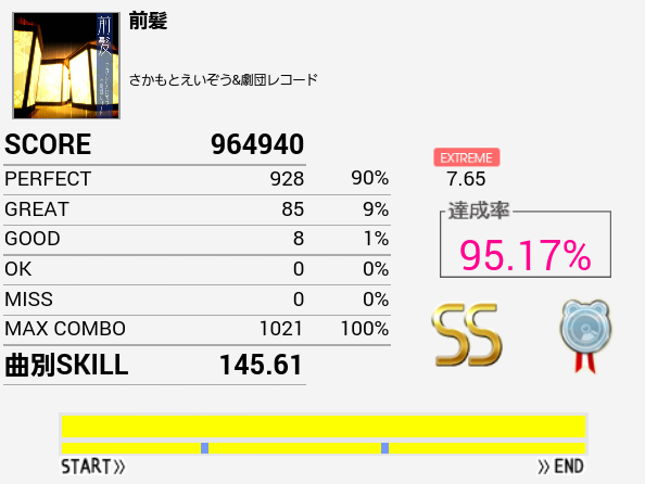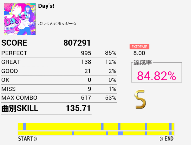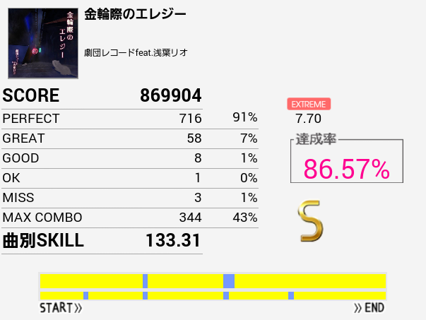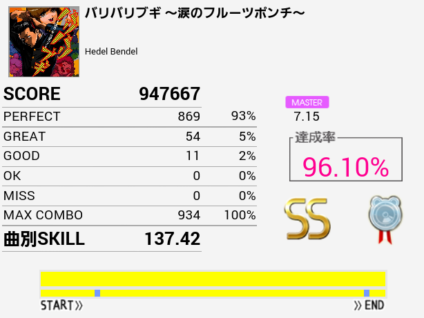 B判定→A判定。少しは譜面認識能力も上がっているみたいで。