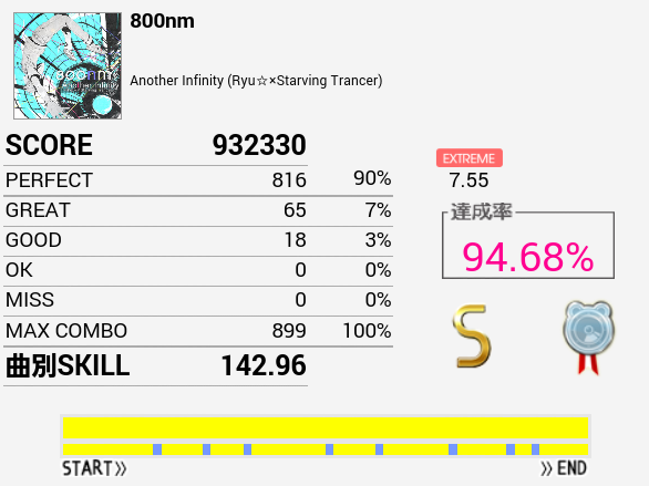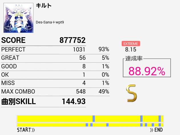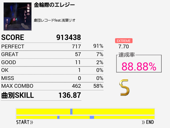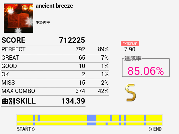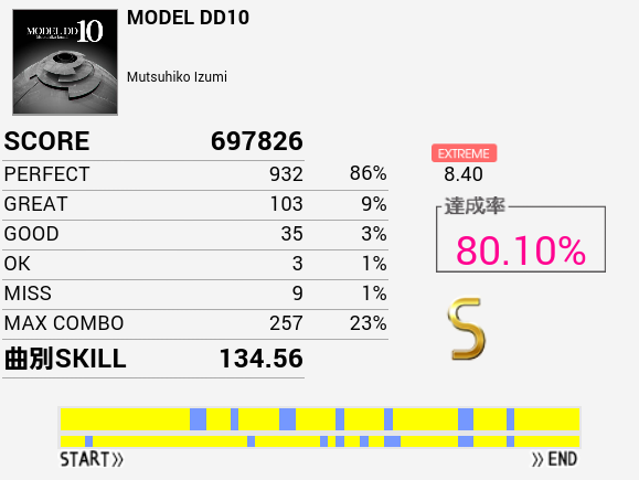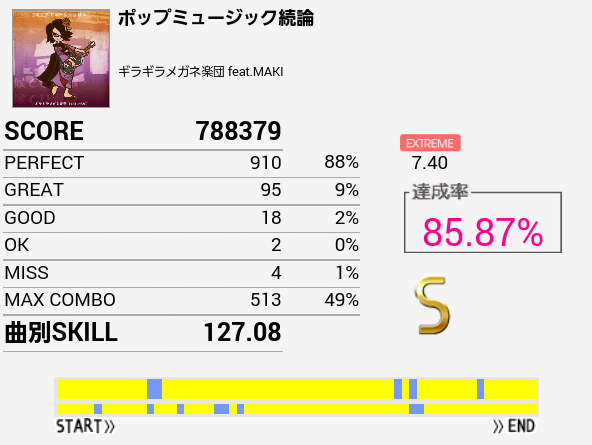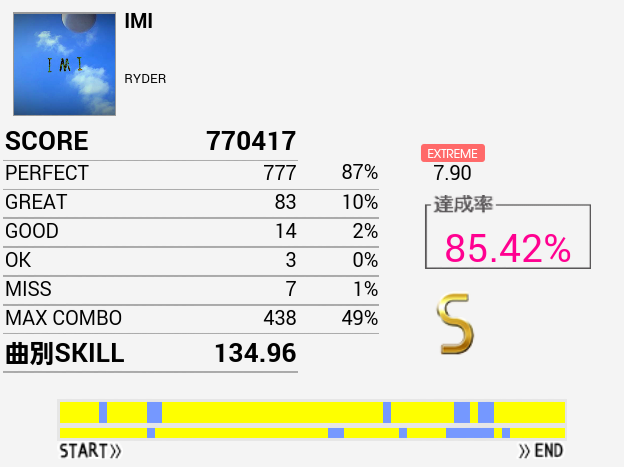 刻み中心の譜面でもノーツが少ないからパフェ率がだらしないことに……。