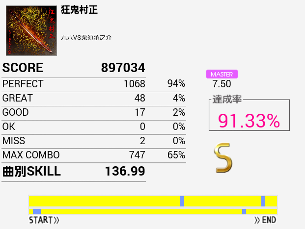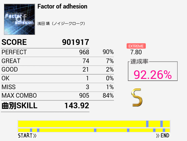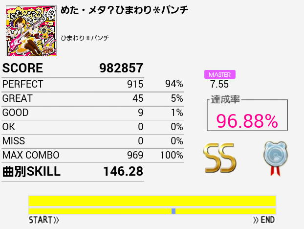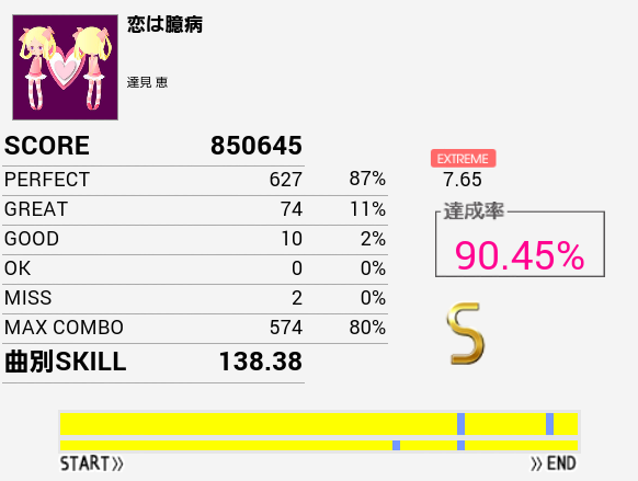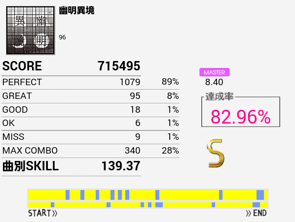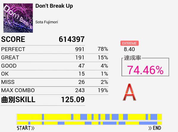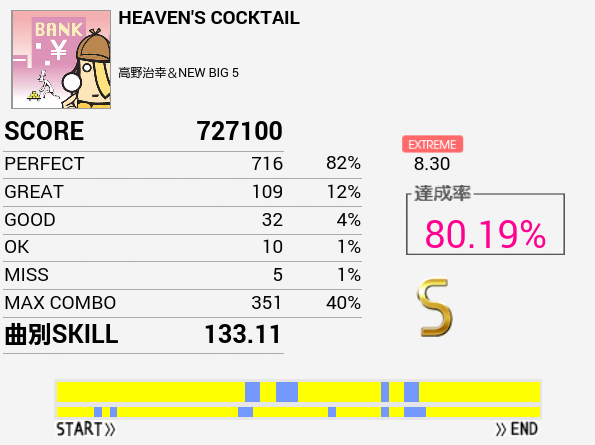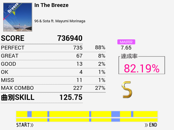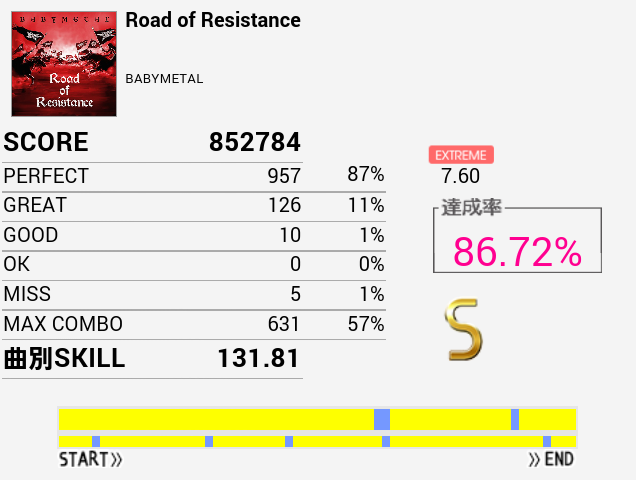 なんか刻みが合わないのだよな。初見(クリアメーター下)のほうがパフェ率はよかった。