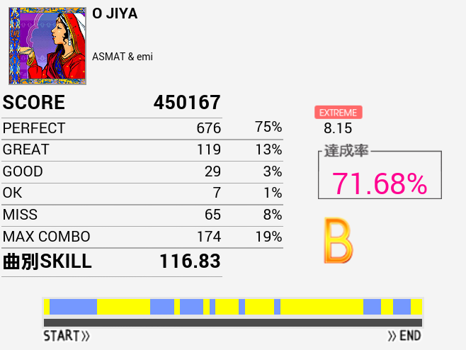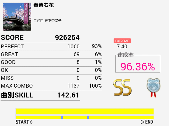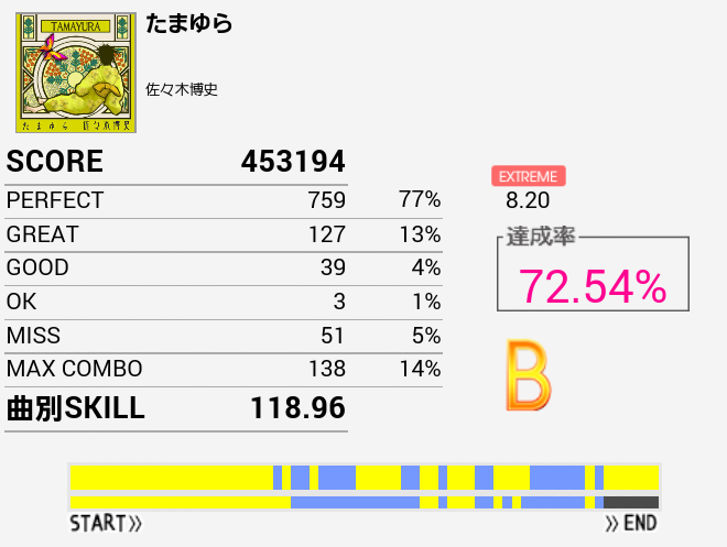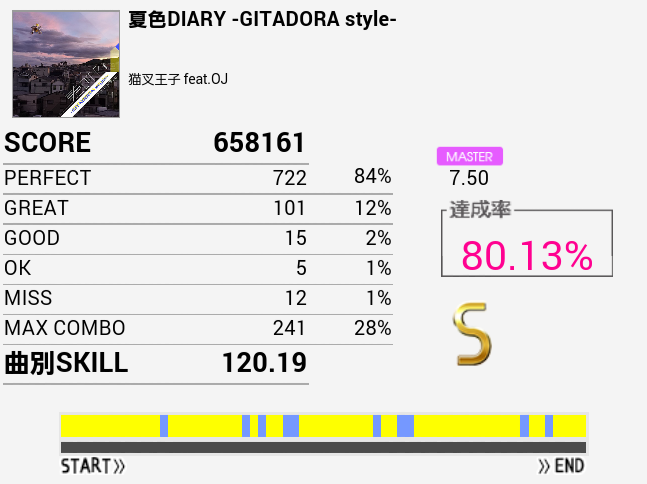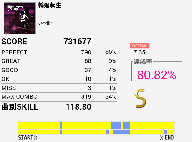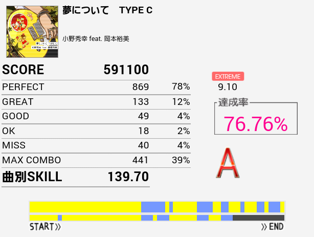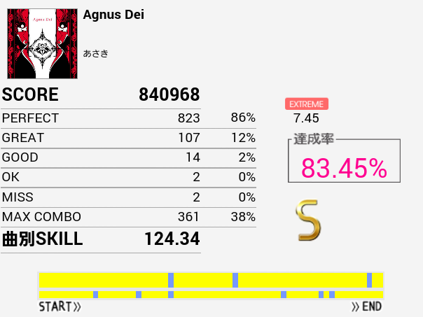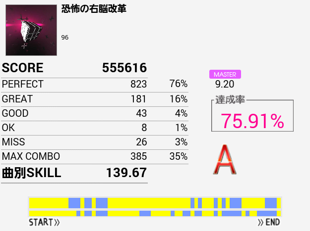 ようやくクリアできた。ある程度ノーツを捨てて手を止めないようにした。