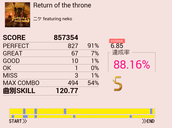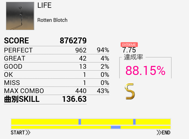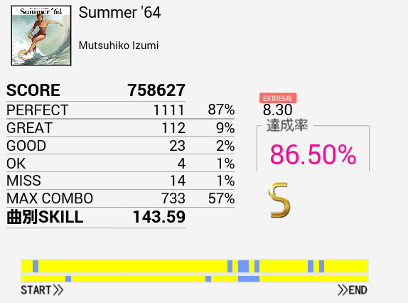 サビのパターンはだいたい叩けるようになったのでSが出た。