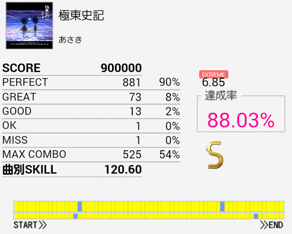 先日の記事を頭に入れつつプレイ。6回くらいやってMISS数はこれがベスト。